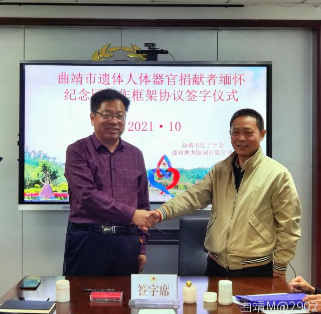 10月13日,曲靖市紅十字會(huì)舉行曲靖市遺體人體器官捐獻(xiàn)者緬懷紀(jì)念園項(xiàng)目建設(shè)簽約儀式,曲靖市紅十字會(huì)與曲靖德龍陵園有限公司正式簽訂了項(xiàng)目建設(shè)協(xié)議書。該紀(jì)念園的建成是我市首個(gè),云南省第五個(gè)遺體人體器官捐獻(xiàn)者紀(jì)念園。市紅十字會(huì)干部職工、志愿者代表,曲靖德龍陵園有限公司董事長(zhǎng),總經(jīng)理參加簽約儀式。